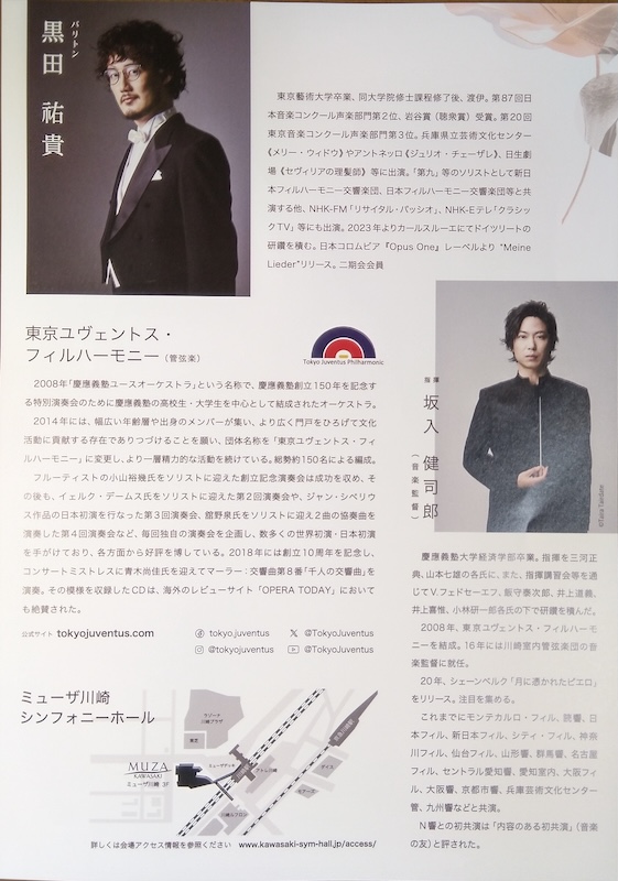 「さすらう若人の歌」。黒田祐貴のバリトンはホール全体に朗々と響いた。曲はすべてマーラーの初期の交響曲に使われている。一曲一曲に親しみを感じた。