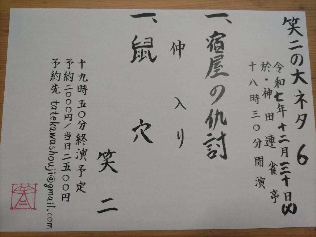 笑二の「鼠穴」は観客の心にも食い込んだ。鼠穴はふさいでおかなければ。