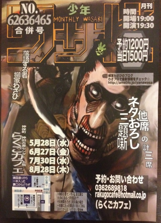 江戸弁の会話の調子のよさで押していく噺なのだがわさびの江戸弁は流暢とはいえなかった。