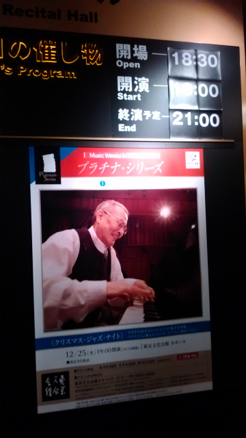 今年最後の山下洋輔のコンサートだ。東京文化会館 プラチナ・シリーズと題されたコンサートシリーズの第1回目となる。第2回目以降は錚々たるクラシックの演奏家たちが並んでいる。堀米ゆず子、ミッシャ・マイスキー、仲道郁代、等々。<奇跡の音響>と称されるクラシックの殿堂での初頭を山下洋輔がやるとは…。