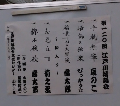 時々変なギャグを入れて笑いを取っていたがこれは本来大真面目に演って涙を取るところだろう。師匠のさん喬がやったら似合いそうな噺だ。